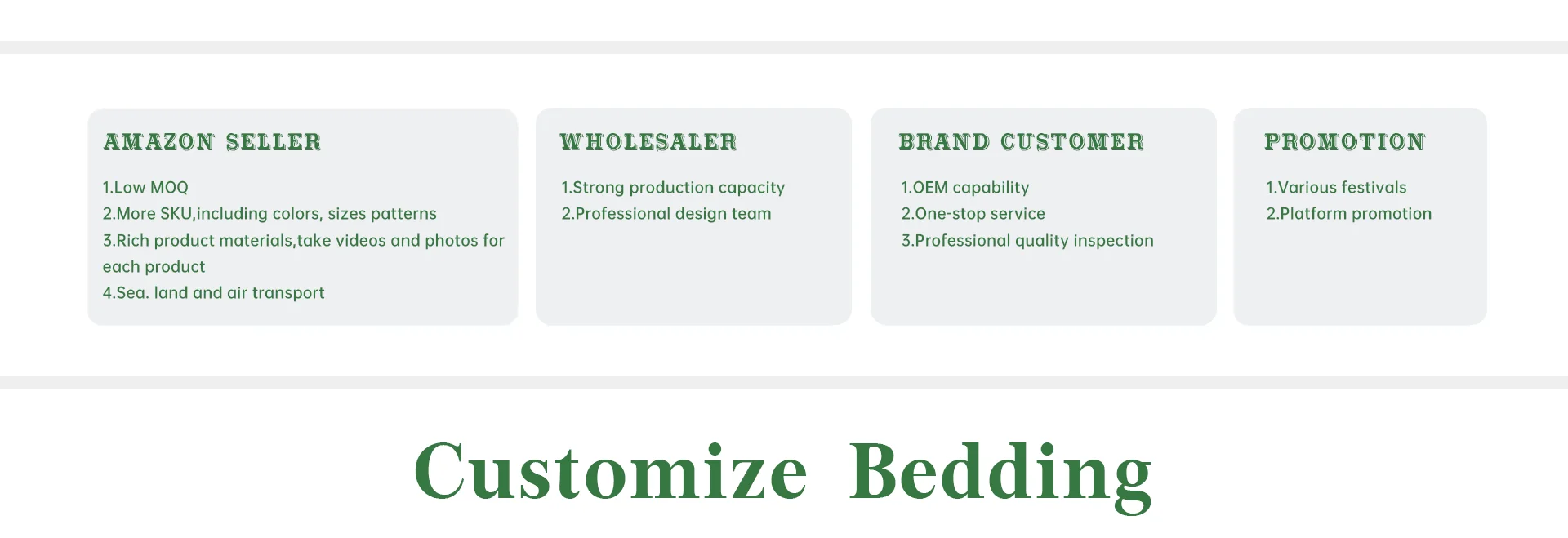 Productos principales:Juegos de cama de bambú, juegos de cama de algodón, juegos de cama de lino, diferentes tipos de tela, ropa de casa